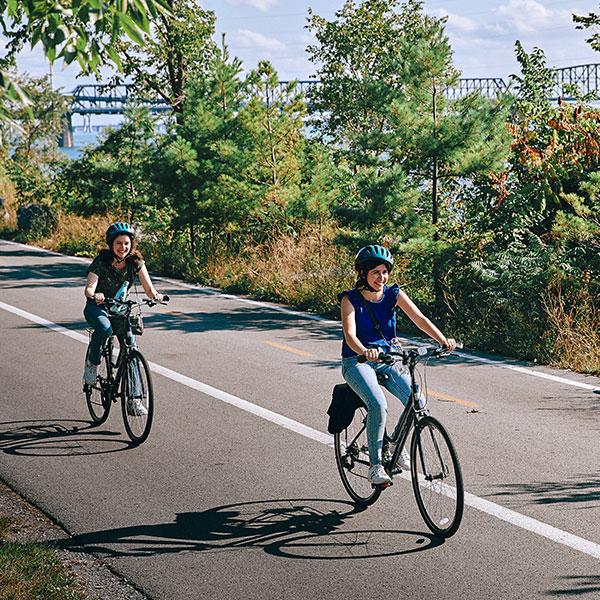 Les gens peuvent profiter des nombreuses pistes cyclables pour se rendre ou transiter par le parc Jean-Drapeau à la course ou à la marche.