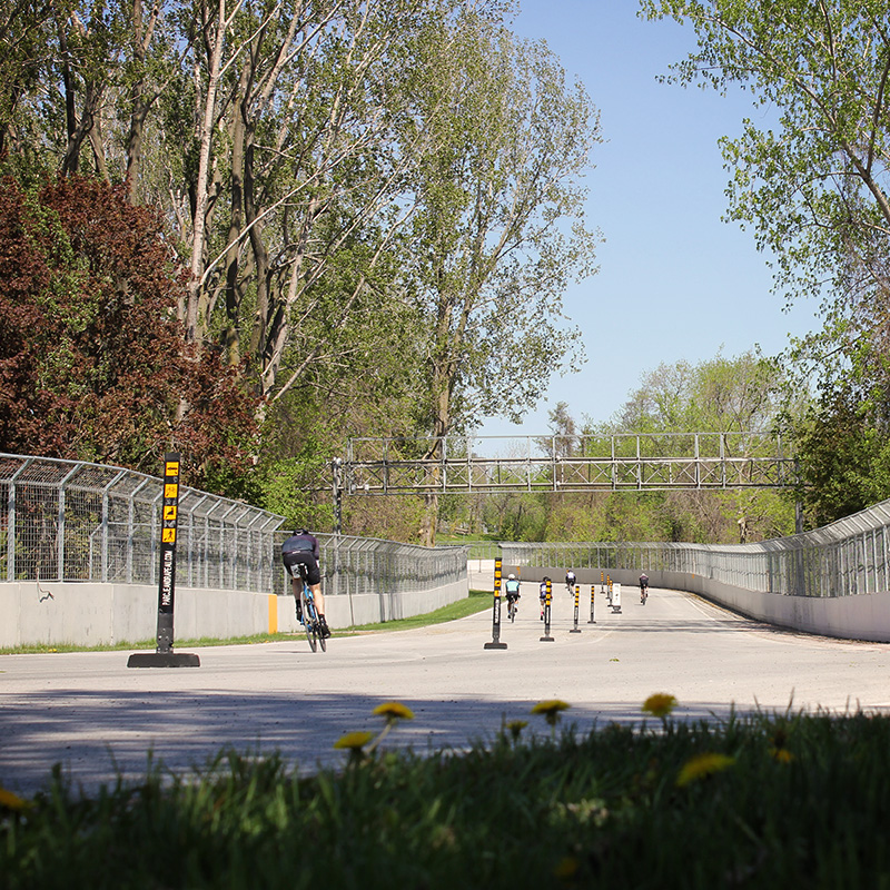 Les gens peuvent profiter des nombreuses pistes cyclables pour se rendre ou transiter par le parc Jean-Drapeau à la course ou à la marche.