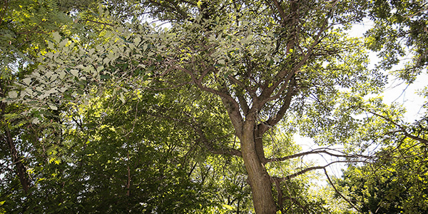 3 espèces prédominantes : l'orme de Sibérie, le frêne de Pennsylvanie et le micocoulier occidental