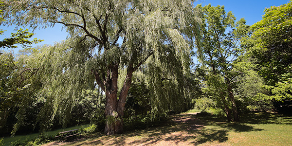 Un saule blanc pleureur de 175 cm de diamètre situé dans les Jardins des Floralies faisant partie des premières plantations de l'île Notre-Dame lors de l'Expo 67.